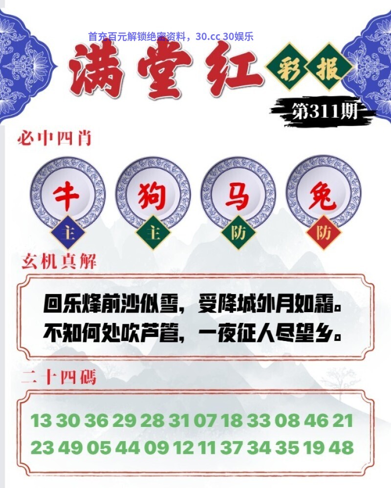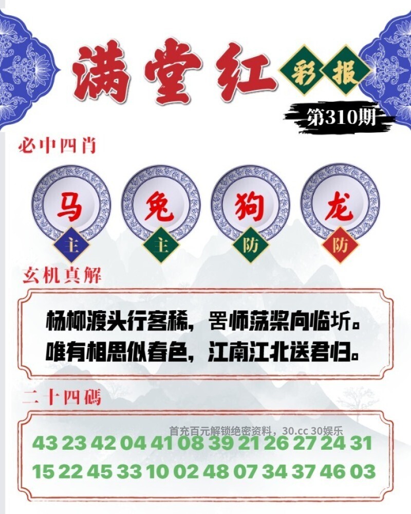 312期:风流才子俏佳人,玄机道破点三二,一语双关话特码,二七美女大家求